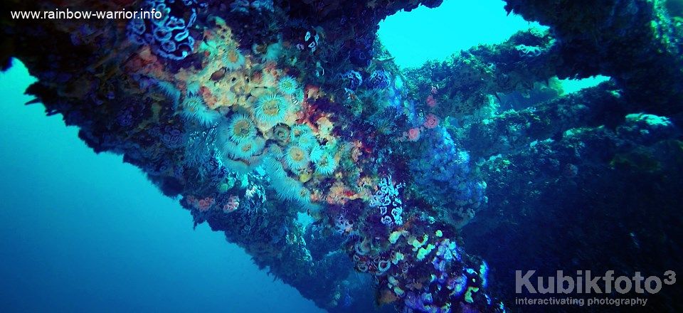 Pieces of the wreck, such as the bowsprit (positioned right at the front of the bow), protrude into the sea and are exposed to the nutrient-filled water. These are the first places where new life formed.